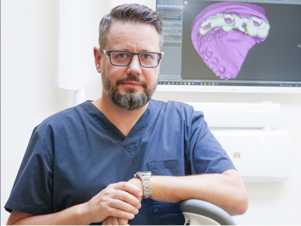 Lek. stom. Maciej Szwajkiewicz ceni sobie rozwój digitalizacji w stomatologii. Właśnie dlatego w naszym gabinecie nie mogło zabraknąć najnowszego i najbardziej zaawansowanego skanera wewnątrzustnego.